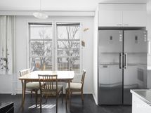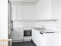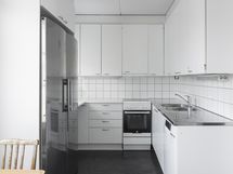 - Liesi: keraaminen, keittolevy, erillisuuni. Työtasot: laminaatti, metalli. Kylmäsäilytys: jääkaappi, pakastin. Varustus: liesituuletin, astianpesukone.