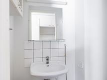 - Varustus: poreamme, suihkuseinä, pesukoneliitäntä, lattialämmitys, wc-istuin, suihku, peilikaappi. Erillisen WC:n kuvaus: Varustus: wc-istuin, lavuaari, bidee-suihku, peili.