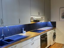 - Paljon kaappitilaa, Suuri tiskipöytä, Komposiittiallas, Lasikaapit, Paljon työskentelytilaa, Halogeenivalot, Puutasot, Astianpesukone, Pesukoneliitos, Induktioliesi, Liesituuletin, Liesi tai uuni erikseen, Jääkaappi, Pakastin