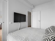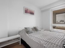 Tässä vähän asutussa asunnossa avokeittiö ja olohuone muodostavat viihtyisän oleskelutilan, jossa kaikille arjen tarpeille löytää paikkansa komeiden näkymien äärellä. Makuuhuone on kahden kulkuaukkonsa ansiosta sopiva suurellekin parisängylle.