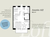 Huomioithan, että ilmoituksessa esitetyt kuvat ovat havainnekuvia, eivätkä välttämättä vastaa juuri tätä asuntoa. Kuvat ja esimerkkipohjat on tarkoitettu antamaan yleiskuva mahdollisista toteutusvaihtoehdoista. Myynnissä olevan huoneiston tarkka pohjaratkaisu löytyy asunnon pohjakuvasta, ja lopulliset yksityiskohdat vahvistetaan myyntiasiakirjoissa.
