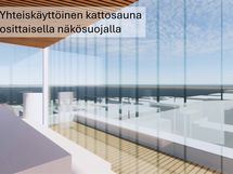 Poijusta tulee yhteisöllinen kerrostalo, jossa on luksustasoisia yhteisiä tiloja, kuten merinäköaloilla ja lasiseinillä varustettu kattosauna sekä takkahuone, toimiva talopesula, monipuolinen pyöränkorjausverstas, vierashuone sekä keittiö- ja ruokailutila, jonka voit halutessasi varata yksityistilaisuuksiin.