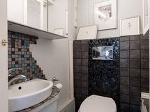 - Yläk.wc, lavuaari, alak.wc lavuaari, kellarissa suihku pesuh., sauna, kiuas