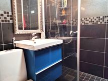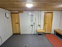 - Suihku, Suihkuseinä, Pesukonevalmius, Allaskaappi, Rättipatteri, Laattalattia, Laattaseinä, Lattialämmitys, Peili