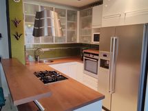 - Astianpesukone, Kaasuliesi, Liesituuletin, Liesi tai uuni erikseen, Jää-pakastinkaappi, Paljon kaappitilaa, Paljon työskentelytilaa, Halogeenivalot, Laminaattitasot