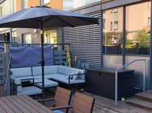 Parvekkeelta suoraan ulos omalle terassi pihalle.