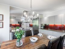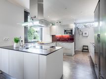 - Aran Cucine keittiö, kvartsikomposiittitasot, induktio, integroitu astianpesukone, kaksi pakastinta, viinikaappi. Siemens muut kodinkoneet ja Festivon pakastin ja jääkaappi. Kylmiö. Lattia vinyylikorkki. Remontoitu 2012