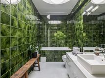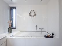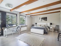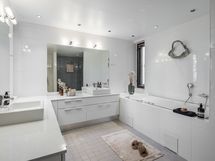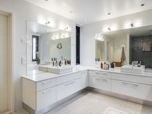 - Pesutilojen kuvaus: Kellarikerroksen uima-allasosastolla 2 suihkua ja puketumistila. Ylin (3.krs) 2 kylpyhuonetta, ensuite päämakuuhuoneen yhteydessä + pienempi kylpyhuone. Erillisten WC:n lukumäärä: 2.