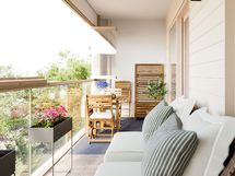 Toimiva kaksio suurella lasitetulla parvekkeella – Ihastu tähän viihtyisään kotiin vehreässä Konalassa.
