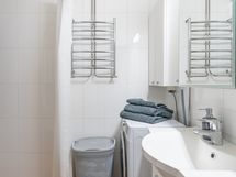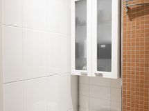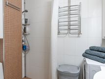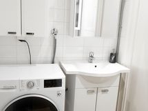- Suihku, Peilikaappi, Pesukone, Lattialämmitys, Laattalattia, Laattaseinä, Allaskaappi, Rättipatteri