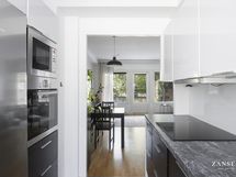 - Keittiössä on astianpesukone, induktio liesitaso, jääkaappi, pakastin, mikroaaltouuni, erillisuuni ja liesituuletin.