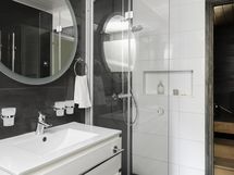 Lattiat on laattaa ja seinät on kaakeloitu.