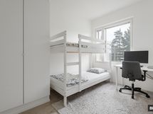 Avokeittiö ja olohuone muodostavat upean oleskelutilan, jossa käytössäsi on reilusti tilaa kaikenlaisille sisustusjärjestelyille. Kaksi makuuhuonetta tarjoavat omaa tilaa sekä pienen perheen jäsenille että etätoimistoa etsiville. Säilytystilaa on tarjolla erittäin hyvin, sillä eteisen ja toisen makuuhuoneen kaapistojen lisäksi käytössäsi on reilunkokoinen vaatehuone.
