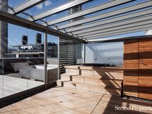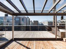 - Huoneistolla on n 280 neliötä terasseja eri ilmansuuntiin, osa on katettuja osa lasitettuja.