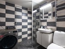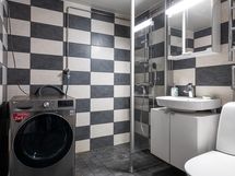 - Pesutilojen varusteet: WC-istuin, suihku, suihkuseinä, peilikaappi ja pesukoneliitäntä.