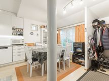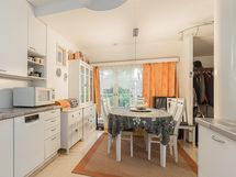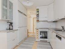 - Työtason materiaali: Laminaatti. Kaapistot, tasot, jääkaappi/pakastin, keraaminen liesitaso, erillisuuni, liesituuletin, astianpesukone. Välitila:levy.