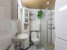 - Pesutilojen kuvaus: Suihku, suihkuseinä, peilikaappi, wc-istuin, bidee, pesukoneliitäntä. patteri.(pyyhekuivain on poistettu).