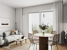 Tämän asunnon parhaat ominaisuudet • Kompakti ja toimiva kokonaisuus • Keittotila ja olohuone yhtenäistä tilaa – käytännöllinen ratkaisu • Kylpyhuone on tyylikäs ja moderni • Tilava lasitettu parveke – avautuu lounaaseen, nauti auringosta ja näkymistä Keskuspuistoon. Toimii olohuoneen jatkeena pitkälle syksyyn
