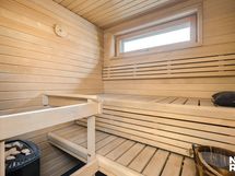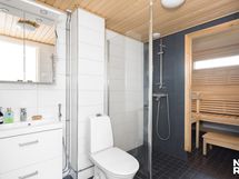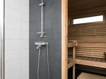 - Kuvaus: Sauna yläkerran kylpyhuoneen yhteydessä. Saunassa tuuletusikkuna. sähkökiuas