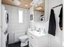 Yläkerran WC kylpyhuoneen yhteydessä. Varustus: pesukoneliitäntä.