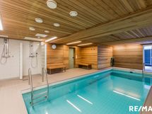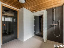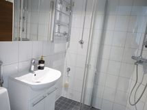 - Sähköinen mukavuuslattialämmitys laattalattian alla, suihku ja kääntyvät suihkuseinät, pesukonevalmius, seinäkaapit ( 2 kl), peilikaappi, lavuaari ja allaskaappi (2025), WC-istuin, käsisuihku, rätti/pyyhepatteri. Remontoitu 2011-2012 linjasaneerauksen yhteydessä.