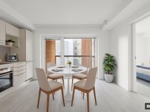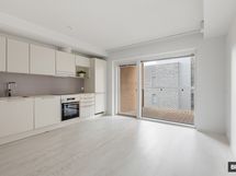 Avokeittiö ja olohuone muodostavat upean avoimen tilan, joka jatkuu lämpimillä säillä suurelle lasitetulle parvekkeelle. Myös makuuhuone on mukavan avara ja käytettävissäsi on myös reilunkokoinen vaatekaapisto.
