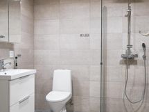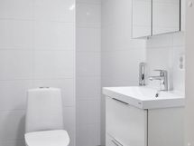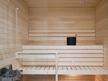 - Kylpyhuoneessa suihkusetti, kääntyvä suihkuseinä, wc-istuin, allas, peilikaappi valolla, allaslaatikosto, käsisuihku, hana, pyykkikaappi, pesukoneliitäntä ja sauna. Lisäksi erillinen wc, jossa peilikaappi valolla, allaslaatikosto, wc-istuin ja käsisuihku
