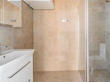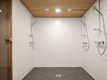 - Suihku, kääntyvä suihkunurkka, peilikaappi valolla, allaskaappi, hana käsisuihkulla ja pesukoneventtiilillä, wc-istuin, kiinteä valaisin ja sähköinen mukavuuslattialämmitys. Lisäksi erillinen wc, jossa peilikaappi valolla, allaskaappi, hana käsisuihkulla, wc-istuin ja sähköinen mukavuuslattialämmitys