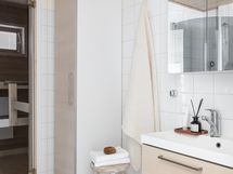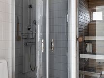 - Varustus: suihkuseinä, pesukoneliitäntä, lattialämmitys, wc-istuin, suihku, peilikaappi.