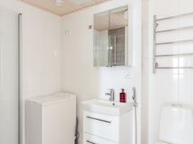- Pesutilojen varusteet: Suihku, wc-istuin, suihkuseinä, pesukoneliitäntä, peilikaappi, pesuallas, allaskaappi, bidee-suihku, lämmitettävä pyyhekuivain ja lattialämmitys.