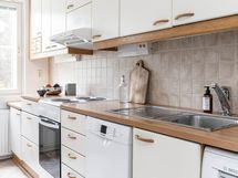 - Liesi: sähköliesi. Työtasot: laminaatti. Kylmäsäilytys: jääkaappi/pakastin. Varustus: astianpesukone.