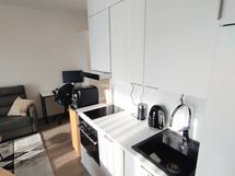 Asunto on laadukkaasti varusteltu: integroitu astianpesukone, erillisuuni, induktio keittoliesi, lattialämmitys. Kylpyhuone on laatoitettu ja siellä on pesukoneliitännät.