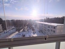 Asunto sijaitsee ylimmässä 6.kerroksessa ja siinä on huoneiston levyinen lasitettu parveke.