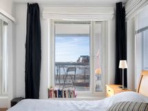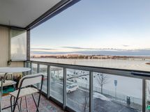 - sisään vedetty, ulkopuolinen, lasitettu, lasitettua parveketta. Parvekkeen suunta: luode, kaakko
