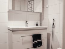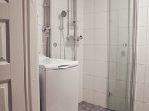- Suihku, Pesukone, Peilikaappi, Allaskaappi, Rättipatteri, Laattalattia, Halogeenivalot, Laattaseinä, Suihkuseinä
