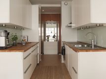 - Paljon kaappitilaa, Paljon työskentelytilaa, Puutasot, Astianpesukone, Integroidut koneet, Keraaminen liesi, Liesituuletin, Liesikupu, Jää-pakastinkaappi