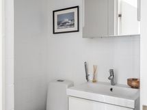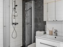 - Pesutilojen kuvaus: Kylpyhuone remontoitu kokonaan vesieristeineen 04/2022. Seinät laatoitettu, lattia 10X10 laattaa, käääntyvät suihkuseinät, pyyhekuivain, pesuallas, allaskaapisto, peilikaappi. Pesukoneliitäntä, pesutorni mahtuu hyvin.
