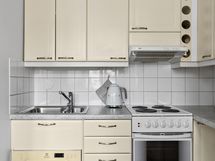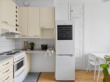 - Jääkaappipakastin, lattialiesi, liesituuletin, astianpesukone, kaapistot, kiinteät valaisimet.
