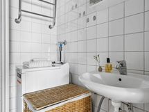 - Kylpyhuone, suihku, suihkukaappi, peilikaappi, pesukoneliitäntä, kiinteät valaisimet, lavuaari.