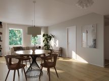 Asunto Oy Helsingin Auringon valoisat kaupunkikodit rakentuvat Kotkavuoren rauhalliseen ympäristöön, saneerattavan Siriuksen kylkeen.