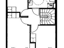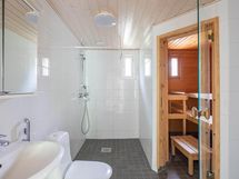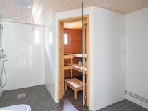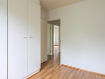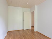 Yläkerrasta löytyvät makuuhuoneet, joissa on runsaasti säilytystilaa. Oma sauna ja kylpyhuone tuovat arkeen mukavuutta. Asunto sopii hyvin perheelle, joka arvostaa käytännöllisiä tiloja ja rivitaloasumisen rauhaa.