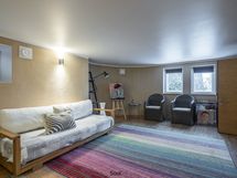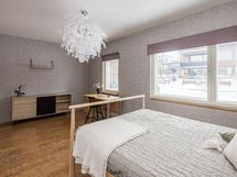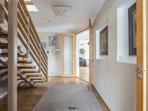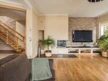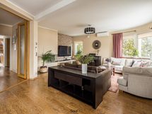 Kolmeen tasoon jakautuva talo tarjoaa runsaat ja muuntuvat tilat. Kaksi asuinkerrosta ja kellarikerros tuovat joustavuutta niin perheen kuin yksilöllisten tarpeidenkin mukaan. Olohuone on erityisen avara ja helposti muunneltavissa monenlaisiin sisustusratkaisuihin. Olohuoneessa on lämpöä varaava takka, joka ulottuu myös viereiseen makuuhuoneeseen.