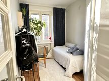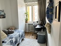 Yhden makuuhuoneen asunnosta muutettu 3 makuuhuoneen asunnoksi + yksi välitila, jossa nyt sängylle paikka, mutta toimii kirjastona tai työtilana. Seinän voi myös helposti purkaa ja palauttaa yhdeksi valtavaksi makuuhuoneeksi.