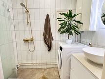 - Suihku, Suihkuseinä, Pesukonevalmius, Allaskaappi, Laattalattia, Laattaseinä