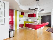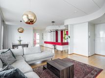 Myytävä asunto on talon 7. kerroksessa ja super valoisa, isojen ikkunoiden ja korkeuden takia. Huoneiston pohjaa on suunniteltu uniikiksi rakennusvaiheessa ja valittu rohkeita värejä, ettei olisi niin "pakasta vedetty". Asunnon länsipääty on teknisesti makuuhuone, mutta tämä on jätetty auki rakennusvaiheessa. Tilasta saa kevyellä seinällä selkeän neljännen huoneen, häiritsemättä olohuoneen avaruuden tunnetta. Asunto on varustettu lasitetulla parvekkeella ja näkymät ovat puistomaisen avarat. Taloyhtiö on HITAS-yhtiö mutta hintapyynti ei ole HITAS-maksimi vallitsevan markkinatilanteen takia. Muistathan, että tässä yhtiössä on rekisteröity vain kaksi julkista kauppaa viimeisen 15 vuoden aikana (KVKL Hintaseurannan mukaan), mikä osaltaan kertoo yhtiön haluttavuudesta. Paikalliset tuntevat talon ja moni kiikaroi juuri tätä yhtiötä sillä silmällä. Välitysliike ei yllättyisi jos asunnosta käydään tiukkaaa kisaa, vaikka markkinat alkavat vasta nyt heräilemään.