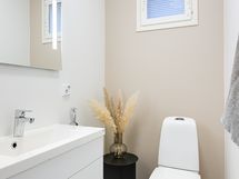 Varusteet: Lattiaan asennettu WC, Bidee, Lattialämmitys, Allaskaappi