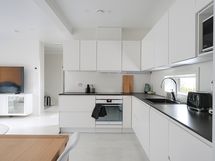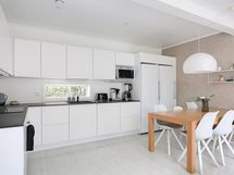 - Varusteet: Jääkaappi, Pakastin, Astianpesukone. Työtaso: Laminaattitaso. Liesi: Induktioliesi, Erillisuuni, Liesikupu. Noblessan valmistama laadukas keittiö. Hyvin toimivat Gram-merkkiset kodinkoneet. Ruokailutila: Ruokailutila ja olohuone ovat yhtenäistä tilaa, josta suuret ikkunat avaavat avoimen näkymän aurinkoiselle terassille.