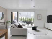 - Olohuoneesta kaunis näkymä suojaiselle terassille, ilmansuunta etelä-länsi