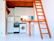 - Liesi: sähköliesi. Kylmäsäilytys: jenkkikaappi. Varustus: kiinteät valaisimet. Pesukone
