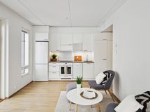 - Keittiön varusteet: Jääkaappipakastin, liesi, astianpesukone, liesituuletin ja uuni (kiertoilmauuni). Liesi: Induktioliesi.